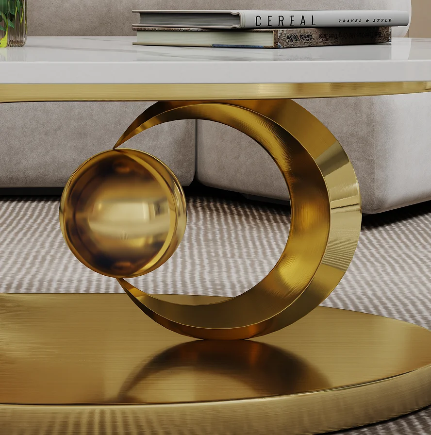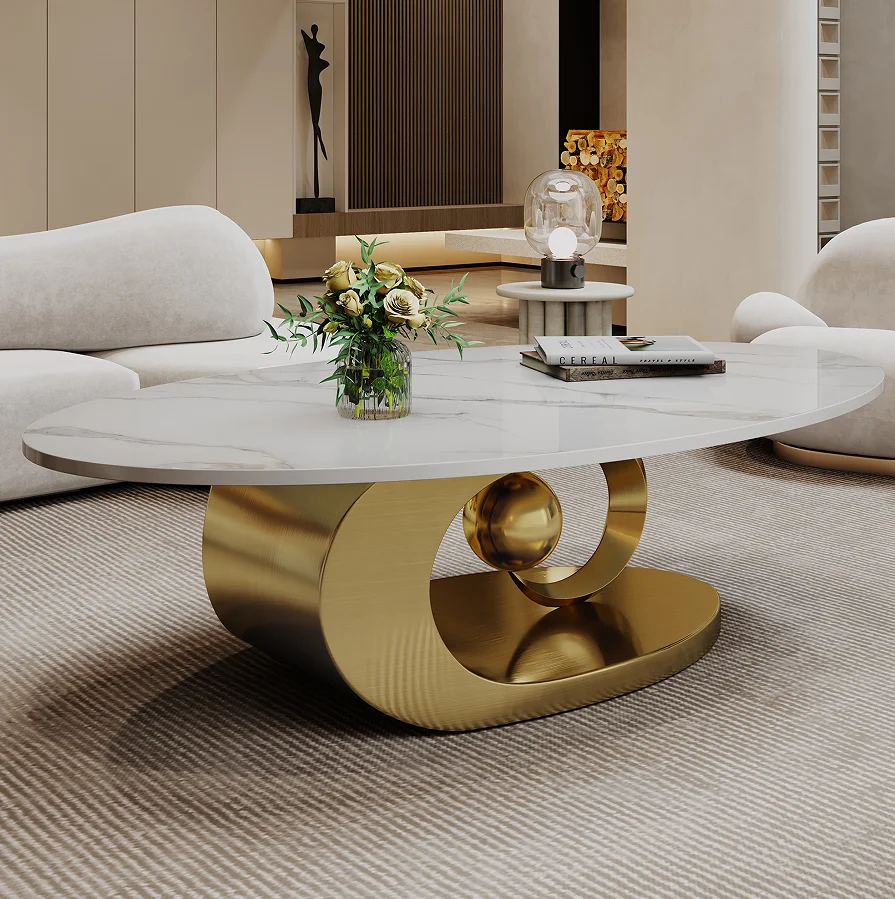 Modern Metal Coffee Table with Stainless Steel Base Indoor Home Living Room Furniture